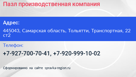 Пазл, производственная компания по адресу 445043, Самарская область, Тольятти, Транспортная, 22 ст2 в дальнейшем Организация, размещена в следующих категориях: