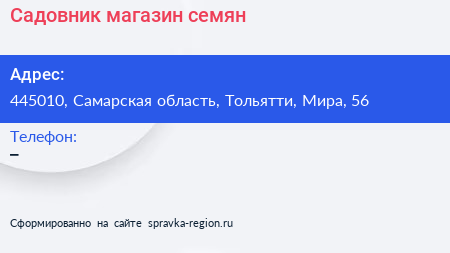 Садовник, магазин семян по адресу 445010, Самарская область, Тольятти, Мира, 56 в дальнейшем Организация, размещена в следующих категориях: