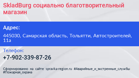SkladBurg, социально-благотворительный магазин по адресу 445030, Самарская область, Тольятти, Автостроителей, 11а в дальнейшем Организация, размещена в следующих категориях: