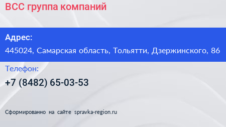 ВСС, группа компаний по адресу 445024, Самарская область, Тольятти, Дзержинского, 86 в дальнейшем Организация, размещена в следующих категориях: