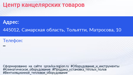 Центр канцелярских товаров по адресу 445012, Самарская область, Тольятти, Матросова, 10 в дальнейшем Организация, размещена в следующих категориях: