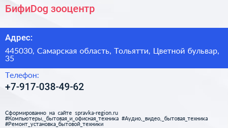 БифиDog, зооцентр по адресу 445030, Самарская область, Тольятти, Цветной бульвар, 35 в дальнейшем Организация, размещена в следующих категориях: