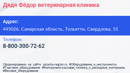 Дядя Фёдор, ветеринарная клиника по адресу 445026, Самарская область, Тольятти, Свердлова, 51 в дальнейшем Организация, размещена в следующих категориях: