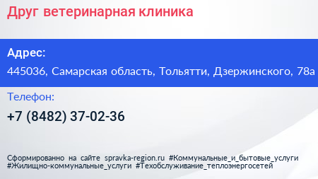 Друг, ветеринарная клиника по адресу 445036, Самарская область, Тольятти, Дзержинского, 78а в дальнейшем Организация, размещена в следующих категориях: