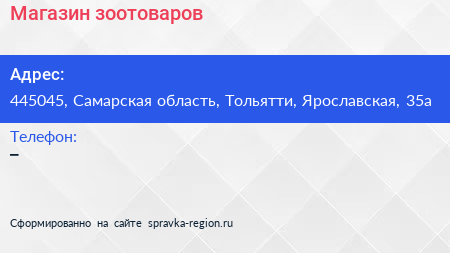 Магазин зоотоваров по адресу 445045, Самарская область, Тольятти, Ярославская, 35а в дальнейшем Организация, размещена в следующих категориях: