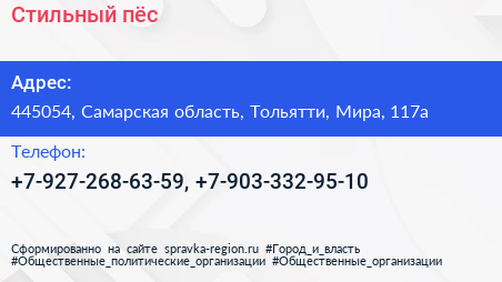 Стильный пёс по адресу 445054, Самарская область, Тольятти, Мира, 117а в дальнейшем Организация, размещена в следующих категориях: