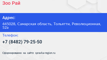 Зоо-Рай по адресу 445028, Самарская область, Тольятти, Революционная, 52а в дальнейшем Организация, размещена в следующих категориях: