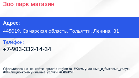 Зоо-парк, магазин по адресу 445019, Самарская область, Тольятти, Ленина, 81 в дальнейшем Организация, размещена в следующих категориях:
