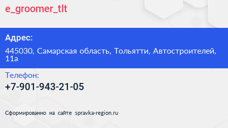 e_groomer_tlt по адресу 445030, Самарская область, Тольятти, Автостроителей, 11а в дальнейшем Организация, размещена в следующих категориях: