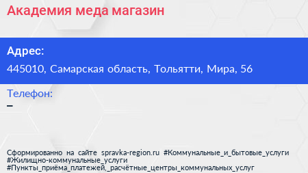 Академия меда, магазин по адресу 445010, Самарская область, Тольятти, Мира, 56 в дальнейшем Организация, размещена в следующих категориях: