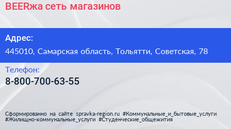 BEERжа, сеть магазинов по адресу 445010, Самарская область, Тольятти, Советская, 78 в дальнейшем Организация, размещена в следующих категориях: