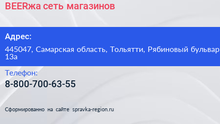BEERжа, сеть магазинов по адресу 445047, Самарская область, Тольятти, Рябиновый бульвар, 13а в дальнейшем Организация, размещена в следующих категориях: