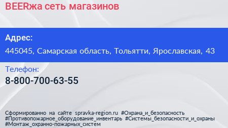 BEERжа, сеть магазинов по адресу 445045, Самарская область, Тольятти, Ярославская, 43 в дальнейшем Организация, размещена в следующих категориях: