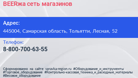 BEERжа, сеть магазинов по адресу 445004, Самарская область, Тольятти, Лесная, 52 в дальнейшем Организация, размещена в следующих категориях:
