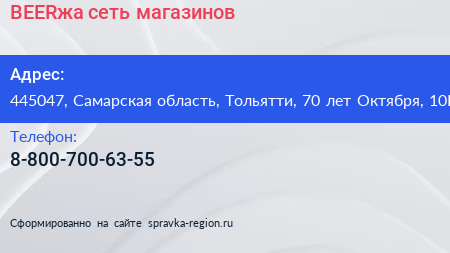 BEERжа, сеть магазинов по адресу 445047, Самарская область, Тольятти, 70 лет Октября, 10Б в дальнейшем Организация, размещена в следующих категориях: