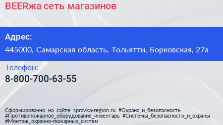 BEERжа, сеть магазинов по адресу 445000, Самарская область, Тольятти, Борковская, 27а в дальнейшем Организация, размещена в следующих категориях:
