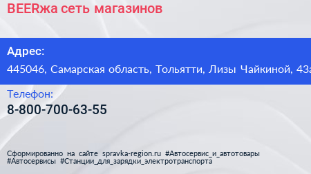 BEERжа, сеть магазинов по адресу 445046, Самарская область, Тольятти, Лизы Чайкиной, 43а в дальнейшем Организация, размещена в следующих категориях: