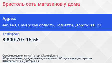 Бристоль, сеть магазинов у дома по адресу 445148, Самарская область, Тольятти, Дорожная, 27 в дальнейшем Организация, размещена в следующих категориях: