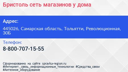 Бристоль, сеть магазинов у дома по адресу 445026, Самарская область, Тольятти, Революционная, 30Б в дальнейшем Организация, размещена в следующих категориях: