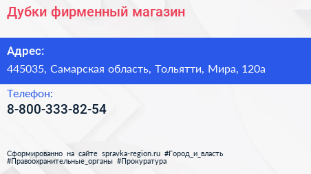 Дубки, фирменный магазин по адресу 445035, Самарская область, Тольятти, Мира, 120а в дальнейшем Организация, размещена в следующих категориях:
