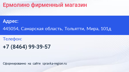 Ермолино, фирменный магазин по адресу 445054, Самарская область, Тольятти, Мира, 101д в дальнейшем Организация, размещена в следующих категориях: