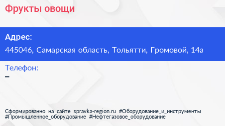 Фрукты & овощи по адресу 445046, Самарская область, Тольятти, Громовой, 14а в дальнейшем Организация, размещена в следующих категориях: