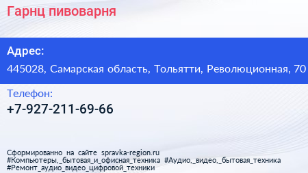 Гарнц, пивоварня по адресу 445028, Самарская область, Тольятти, Революционная, 70 в дальнейшем Организация, размещена в следующих категориях: