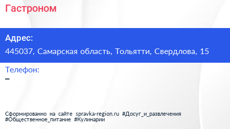 Гастроном по адресу 445037, Самарская область, Тольятти, Свердлова, 15 в дальнейшем Организация, размещена в следующих категориях: