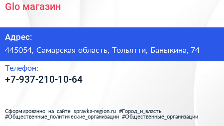 Glo, магазин по адресу 445054, Самарская область, Тольятти, Баныкина, 74 в дальнейшем Организация, размещена в следующих категориях: