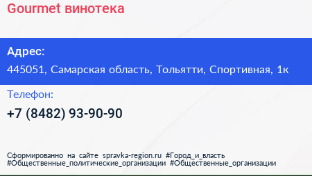 Gourmet, винотека по адресу 445051, Самарская область, Тольятти, Спортивная, 1к в дальнейшем Организация, размещена в следующих категориях: