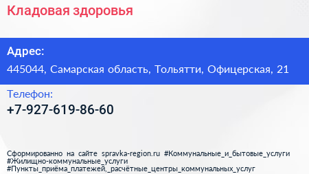 Кладовая здоровья по адресу 445044, Самарская область, Тольятти, Офицерская, 21 в дальнейшем Организация, размещена в следующих категориях: