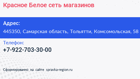 Красное & Белое, сеть магазинов по адресу 445350, Самарская область, Тольятти, Комсомольская, 58 в дальнейшем Организация, размещена в следующих категориях: