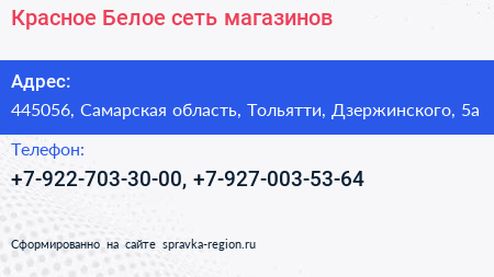 Красное & Белое, сеть магазинов по адресу 445056, Самарская область, Тольятти, Дзержинского, 5а в дальнейшем Организация, размещена в следующих категориях: