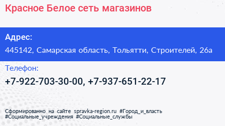 Красное & Белое, сеть магазинов по адресу 445142, Самарская область, Тольятти, Строителей, 26а в дальнейшем Организация, размещена в следующих категориях: