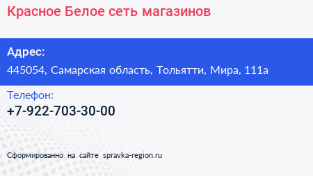 Красное & Белое, сеть магазинов по адресу 445054, Самарская область, Тольятти, Мира, 111а в дальнейшем Организация, размещена в следующих категориях: