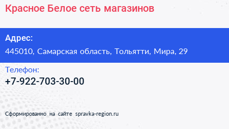 Красное & Белое, сеть магазинов по адресу 445010, Самарская область, Тольятти, Мира, 29 в дальнейшем Организация, размещена в следующих категориях: