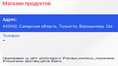 Магазин продуктов по адресу 445042, Самарская область, Тольятти, Ворошилова, 16а в дальнейшем Организация, размещена в следующих категориях: