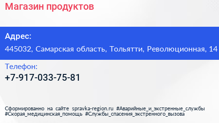 Магазин продуктов по адресу 445032, Самарская область, Тольятти, Революционная, 14 в дальнейшем Организация, размещена в следующих категориях: