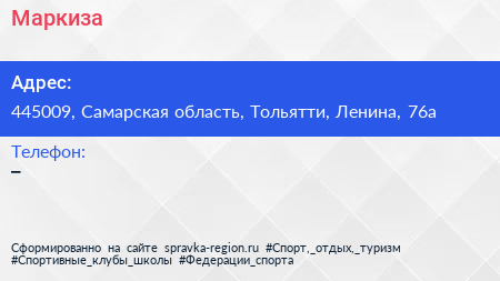Маркиза по адресу 445009, Самарская область, Тольятти, Ленина, 76а в дальнейшем Организация, размещена в следующих категориях: