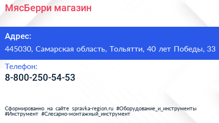 МясБерри, магазин по адресу 445030, Самарская область, Тольятти, 40 лет Победы, 33 в дальнейшем Организация, размещена в следующих категориях: