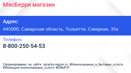 МясБерри, магазин по адресу 445000, Самарская область, Тольятти, Северная, 35а в дальнейшем Организация, размещена в следующих категориях: