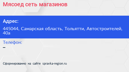 Мясоед, сеть магазинов по адресу 445044, Самарская область, Тольятти, Автостроителей, 40а в дальнейшем Организация, размещена в следующих категориях: