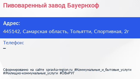Пивоваренный завод Бауернхоф по адресу 445142, Самарская область, Тольятти, Спортивная, 2г в дальнейшем Организация, размещена в следующих категориях: