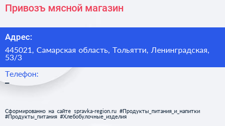 Привозъ, мясной магазин по адресу 445021, Самарская область, Тольятти, Ленинградская, 53/3 в дальнейшем Организация, размещена в следующих категориях: