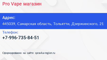 Pro Vape, магазин по адресу 445039, Самарская область, Тольятти, Дзержинского, 21 в дальнейшем Организация, размещена в следующих категориях: