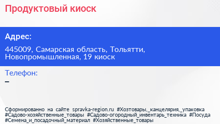 Продуктовый киоск по адресу 445009, Самарская область, Тольятти, Новопромышленная, 19 киоск в дальнейшем Организация, размещена в следующих категориях: