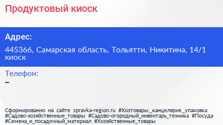 Продуктовый киоск по адресу 445366, Самарская область, Тольятти, Никитина, 14/1 киоск в дальнейшем Организация, размещена в следующих категориях: