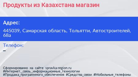 Продукты из Казахстана, магазин по адресу 445039, Самарская область, Тольятти, Автостроителей, 68а в дальнейшем Организация, размещена в следующих категориях: