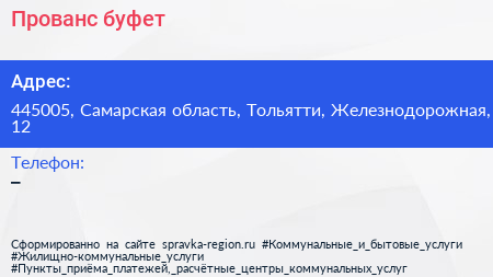 Прованс, буфет по адресу 445005, Самарская область, Тольятти, Железнодорожная, 12 в дальнейшем Организация, размещена в следующих категориях:
