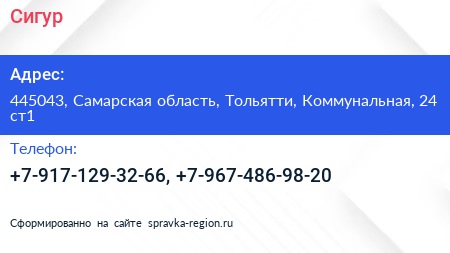 Сигур по адресу 445043, Самарская область, Тольятти, Коммунальная, 24 ст1 в дальнейшем Организация, размещена в следующих категориях: